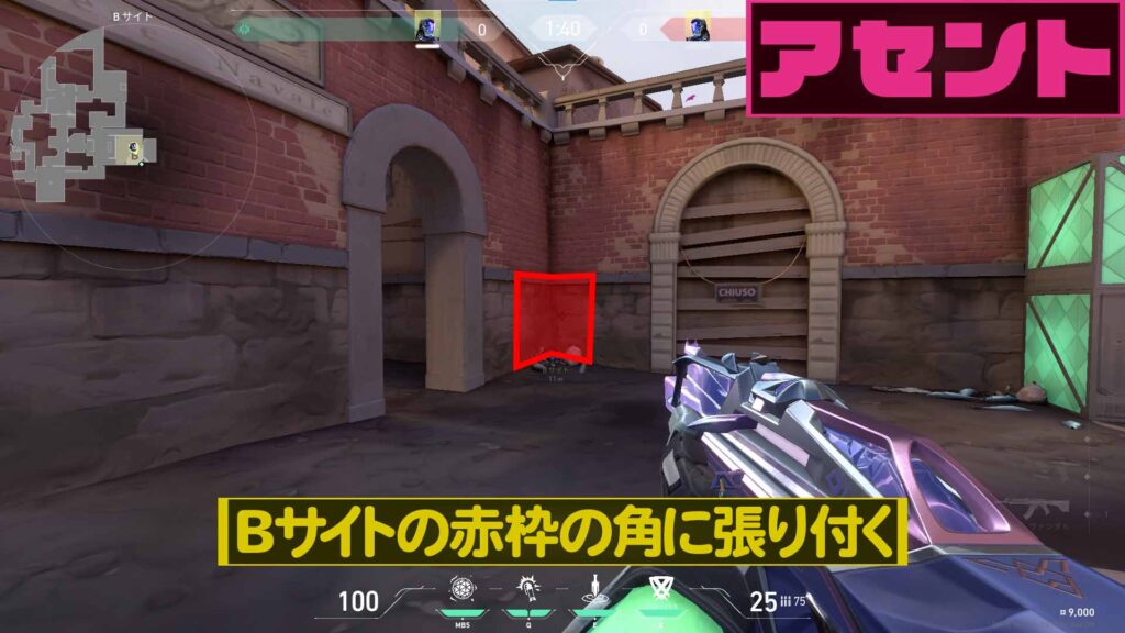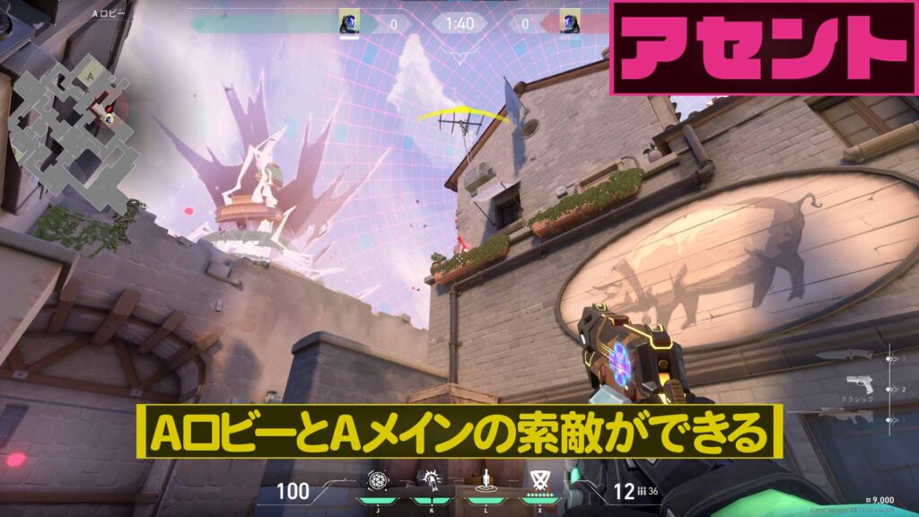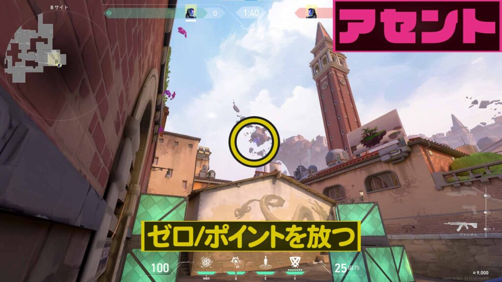 ホームMap[マップ]ASCENT[アセント] 【VALORANT】アセント×KAY/O Bサイトから逆サイドへ索敵ナイフゼロ/ポイント【008】【小技】 2021年12月30日2022年4月8日 SHARE ツイート シェア はてブ LINE Pocket ツイート シェア はてブ LINE Pocket YouTube Twitter Instagram 概要 今回はアセントでKAY/Oのゼロ/ポイントを使った逆サイドへの索敵を紹介したいと思います。 マップ エージェント 実践 配置に着く Bサイトの角に張り付きます。 発動準備 奥に見える空中都市の左に見えるでっぱりにクロスヘアの中心を合わせる。 拡大するとこんな感じ。 発動 そのままゼロ/ポイントを投げる。 Aロビーに刺さり索敵が出来る。※KAY/OがBを守りながら索敵出来る。 VALORANT関連商品 【ポイント5倍 6/22 19:59迄】 WIS 23.8インチ 165Hz ゲーミングモニター PS5 PS4 VALORANT SWITCH APEX FPS FORTNITE PUBG LOL 液晶ディスプレイ MPRT 1ms FHD フルHD HDMI 非光沢 メーカー保証3年価格:24,800円(税込、送料無料) (2023/6/17時点)楽天で購入【新品】【今ならRTX2060、12世代CPUにアップ! 】ゲーミングPC デスクトップパソコン GeForce RTX2060 22型液晶モニター付 第12世代 Intel 12100F 3.30GHz 最大4.30GHz 4コア 8スレッド Win10 NVMe M.2 SSD256GB メモリ16GB ゲーミングパソコン eスポーツ PASOUL 煌価格:99,800円(税込、送料無料) (2023/6/17時点)楽天で購入ゲーミングヘッドセット Razer レイザー Kraken Black ゲーム PC switch PS4 PS5 Xbox FPS 人気 マイク付き ヘッドホン 通話 ヘッドセット クラーケン ブラック 【送料無料】価格:6,980円(税込、送料無料) (2023/6/17時点)楽天で購入 コメントを残す コメントをキャンセルメールアドレスが公開されることはありません。 ※ が付いている欄は必須項目ですコメント ※ 名前 ※ メール ※ サイト 次回のコメントで使用するためブラウザーに自分の名前、メールアドレス、サイトを保存する。 Δ