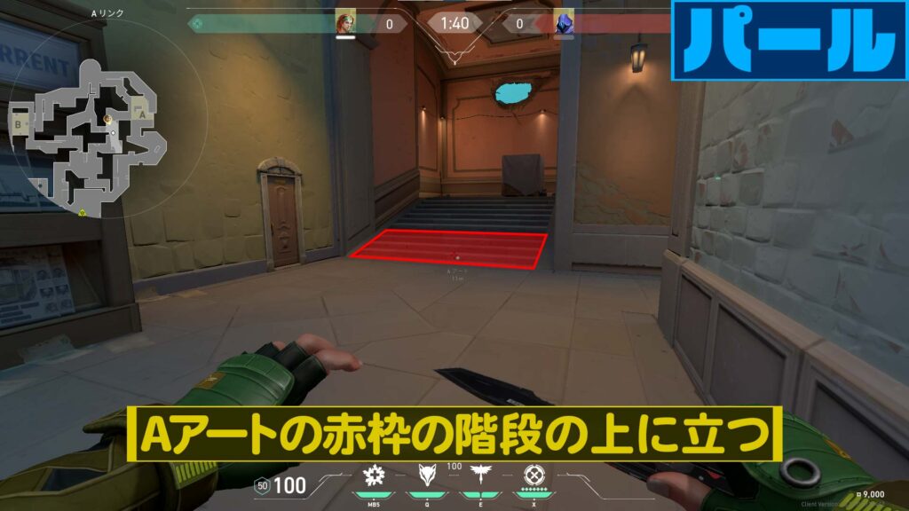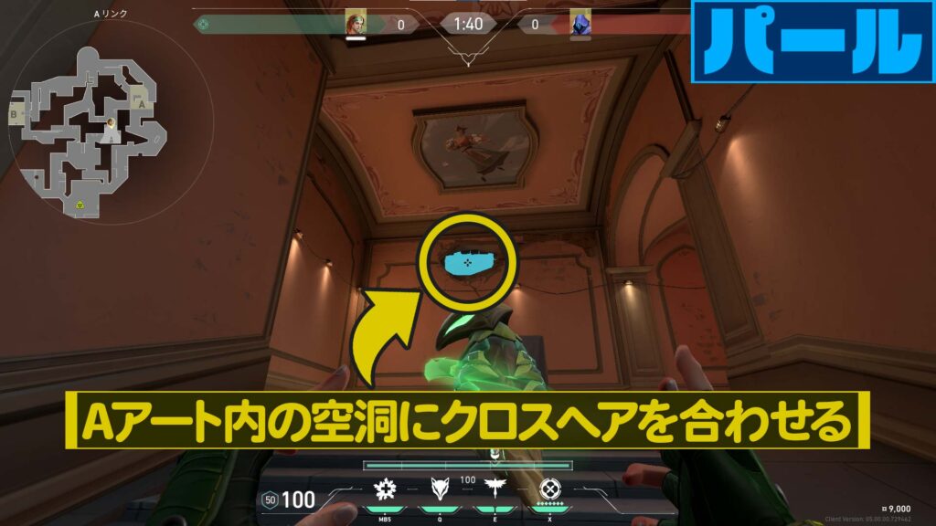 ミニマップ上で穴を抜けた位置で炸裂させます。