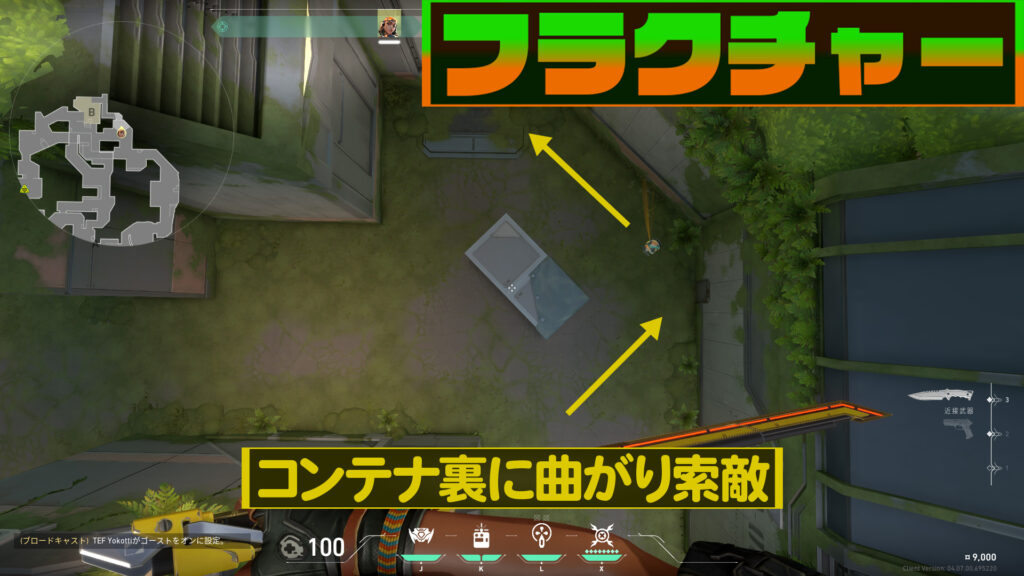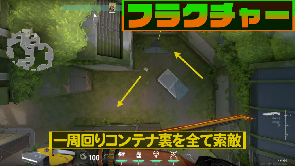 ホームMap[マップ]FRACTURE[フラクチャー] 【VALORANT】フラクチャー×レイズ 索敵なら爆弾付きで効率良くクリアリングブームボット【007】【小技】 2022年5月5日2022年6月5日 SHARE ツイート シェア はてブ LINE Pocket ツイート シェア はてブ LINE Pocket YouTube Twitter Instagram 概要 今回はフラクチャーでレイズのブームボットを使ったクリアリングを紹介したいと思います。 マップ エージェント 実践 配置に着く Bトンネルの赤枠の壁に張り付きます。 発動準備 奥の箱と手前の壁が重なるように左にずれていきます。※左側の画像になるようになればOK アーケード内の黒枠にクロスヘアの中心を合わせます。 発動 そのままブームボットを放ちます。 コンテナ裏に曲がり索敵します。 一周回りコンテナ裏を全て索敵出来ます。 ギリギリジェネレーター裏まで索敵出来ます。 プロがオススメするデバイス紹介 BENQ ゲーミングモニター ZOWIE esports [24.5型 /ワイド /フルHD(1920×1080)] XL2546Kposted with カエレバ楽天市場Amazon Logicool G PRO X SUPERLIGHT ワイヤレス ゲーミングマウス 史上最軽量 63g未満 LIGHTSPEED無線技術 HERO 25Kセンサー POWERPLAY無線充電対応 G-PPD-003WL-BK G-PPD-003WL-WH ブラック ホワイト 国内正規品 2年間無償保証posted with カエレバ楽天市場Amazon Logicool G PRO X ゲーミングキーボード テンキーレス 有線 GXスイッチ クリッキー 日本語配列 LIGHTSYNC RGB 着脱式ケーブル G-PKB-002 国内正規品 2年間無償保証posted with カエレバ楽天市場Amazon Logicool G テンキーレス ゲーミングキーボード 無線 G913 GLスイッチ リニア タクタイル クリッキー 日本語配列 LIGHTSPEED ワイヤレス Bluetooth LIGHTSYNC RGB G913-TKL-LNBK 国内正規品 2年間無償保証posted with カエレバ楽天市場Amazon VALORANT関連商品 【ポイント5倍 6/22 19:59迄】 WIS 23.8インチ 165Hz ゲーミングモニター PS5 PS4 VALORANT SWITCH APEX FPS FORTNITE PUBG LOL 液晶ディスプレイ MPRT 1ms FHD フルHD HDMI 非光沢 メーカー保証3年価格:24,800円(税込、送料無料) (2023/6/17時点)楽天で購入【新品】【今ならRTX2060、12世代CPUにアップ! 】ゲーミングPC デスクトップパソコン GeForce RTX2060 22型液晶モニター付 第12世代 Intel 12100F 3.30GHz 最大4.30GHz 4コア 8スレッド Win10 NVMe M.2 SSD256GB メモリ16GB ゲーミングパソコン eスポーツ PASOUL 煌価格:99,800円(税込、送料無料) (2023/6/17時点)楽天で購入ゲーミングヘッドセット Razer レイザー Kraken Black ゲーム PC switch PS4 PS5 Xbox FPS 人気 マイク付き ヘッドホン 通話 ヘッドセット クラーケン ブラック 【送料無料】価格:6,980円(税込、送料無料) (2023/6/17時点)楽天で購入 コメントを残す コメントをキャンセルメールアドレスが公開されることはありません。 ※ が付いている欄は必須項目ですコメント ※ 名前 ※ メール ※ サイト 次回のコメントで使用するためブラウザーに自分の名前、メールアドレス、サイトを保存する。 Δ