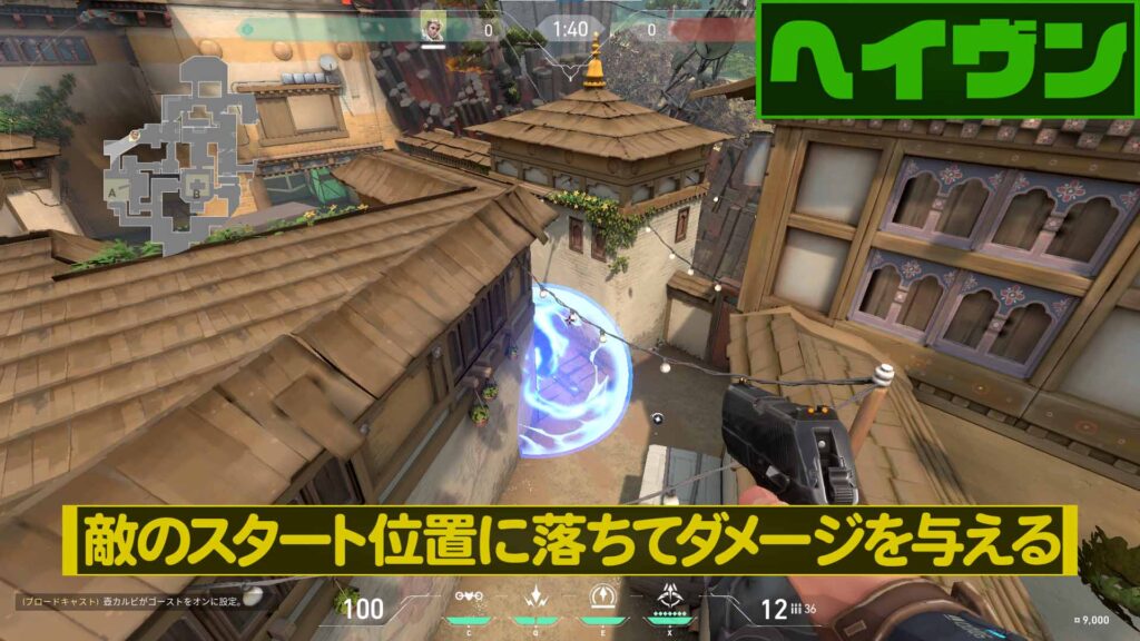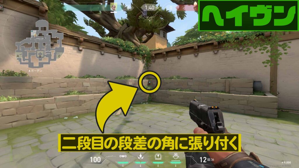 ホームMap[マップ]HAVEN[ヘイヴン] 【VALORANT】ヘイヴン×ソーヴァ プリエイム不要ショックボルト【007】【小技】 2021年9月22日2022年4月8日 SHARE ツイート シェア はてブ LINE Pocket ツイート シェア はてブ LINE Pocket YouTube Twitter Instagram 概要 今回はヘイヴンでソーヴァのショックボルトを使った対ガン待ち空爆を紹介したいと思います。 マップ エージェント 実践 配置に着く Aガーデンの2段目の段差の角に張り付きます。 発動準備 短めの枝の大きく窪んだ葉っぱをまず見つけます。続いてその窪みの中心付近にある葉の先端にクロスヘアの中心を合わせます。 そのままチャージ1で放ちます。※1ゲージ溜まった状態で放てばOK 発動 ガン待ちしている相手の場所にショックボルトが落ちて炸裂します。※安全にロング側に展開しやすくなります VALORANT関連商品 【ポイント5倍 6/22 19:59迄】 WIS 23.8インチ 165Hz ゲーミングモニター PS5 PS4 VALORANT SWITCH APEX FPS FORTNITE PUBG LOL 液晶ディスプレイ MPRT 1ms FHD フルHD HDMI 非光沢 メーカー保証3年価格:24,800円(税込、送料無料) (2023/6/17時点)楽天で購入【新品】【今ならRTX2060、12世代CPUにアップ! 】ゲーミングPC デスクトップパソコン GeForce RTX2060 22型液晶モニター付 第12世代 Intel 12100F 3.30GHz 最大4.30GHz 4コア 8スレッド Win10 NVMe M.2 SSD256GB メモリ16GB ゲーミングパソコン eスポーツ PASOUL 煌価格:99,800円(税込、送料無料) (2023/6/17時点)楽天で購入ゲーミングヘッドセット Razer レイザー Kraken Black ゲーム PC switch PS4 PS5 Xbox FPS 人気 マイク付き ヘッドホン 通話 ヘッドセット クラーケン ブラック 【送料無料】価格:6,980円(税込、送料無料) (2023/6/17時点)楽天で購入 コメントを残す コメントをキャンセルメールアドレスが公開されることはありません。 ※ が付いている欄は必須項目ですコメント ※ 名前 ※ メール ※ サイト 次回のコメントで使用するためブラウザーに自分の名前、メールアドレス、サイトを保存する。 Δ