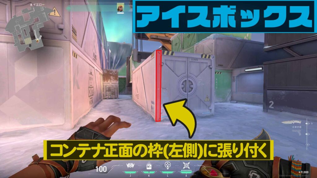 ホームMap[マップ]ICEBOX[アイスボックス] 【VALORANT】アイスボックス×レイズ 室内逃げ場所ないけど大丈夫?索敵ブームボット【003】【小技】 2021年10月3日2022年4月8日 SHARE ツイート シェア はてブ LINE Pocket ツイート シェア はてブ LINE Pocket YouTube Twitter Instagram 概要 今回はアイスボックスでレイズのブームボットを使った索敵を紹介したいと思います。 マップ エージェント 実践 配置に着く Bサイトのコンテナの正面枠(左側)に張り付きます。 枠の大体中央付近にクロスヘアの中心を合わせておけばOK。※この時コンテナに張り付いておく事 発動準備 左側にある詰みあがったコンテナの1番下の枠と斜めの部分が交差する部分にクロスヘアの中心を合わせます。 発動 そのままブームボットを投げます。 コンテナで向きを変えてBガレージにいる相手に反応します。 VALORANT関連商品 【ポイント5倍 6/22 19:59迄】 WIS 23.8インチ 165Hz ゲーミングモニター PS5 PS4 VALORANT SWITCH APEX FPS FORTNITE PUBG LOL 液晶ディスプレイ MPRT 1ms FHD フルHD HDMI 非光沢 メーカー保証3年価格:24,800円(税込、送料無料) (2023/6/17時点)楽天で購入【新品】【今ならRTX2060、12世代CPUにアップ! 】ゲーミングPC デスクトップパソコン GeForce RTX2060 22型液晶モニター付 第12世代 Intel 12100F 3.30GHz 最大4.30GHz 4コア 8スレッド Win10 NVMe M.2 SSD256GB メモリ16GB ゲーミングパソコン eスポーツ PASOUL 煌価格:99,800円(税込、送料無料) (2023/6/17時点)楽天で購入ゲーミングヘッドセット Razer レイザー Kraken Black ゲーム PC switch PS4 PS5 Xbox FPS 人気 マイク付き ヘッドホン 通話 ヘッドセット クラーケン ブラック 【送料無料】価格:6,980円(税込、送料無料) (2023/6/17時点)楽天で購入 コメントを残す コメントをキャンセルメールアドレスが公開されることはありません。 ※ が付いている欄は必須項目ですコメント ※ 名前 ※ メール ※ サイト 次回のコメントで使用するためブラウザーに自分の名前、メールアドレス、サイトを保存する。 Δ