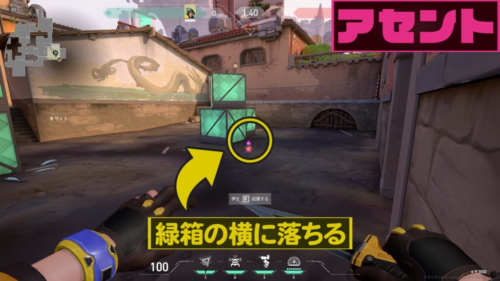 ホームMap[マップ]ASCENT[アセント] 【VALORANT】アセント×キルジョイ 裏取り警戒しつつナノスワーム空爆【003】【小技】 2021年6月8日2022年4月8日 SHARE ツイート シェア はてブ LINE Pocket ツイート シェア はてブ LINE Pocket YouTube Twitter Instagram 概要 今回はアセントでキルジョイの裏取りを警戒しながら出来るナノスワーム空爆の紹介をしたいと思います。 マップ エージェント 実践 配置に着く Bロビーの小屋裏にある木箱と壁の角に張り付きます。 発動準備 見上げると小屋の屋根に近い裂け目の先端と屋根との中心にクロスヘアの中心を合わせます。 発動 投げるとサイト内の緑箱の裏に落ちます。 発動するとこんな感じ。定番で設置されるスパイク設置位置なので覚えておくと有効的です。 VALORANT関連商品 【ポイント5倍 6/22 19:59迄】 WIS 23.8インチ 165Hz ゲーミングモニター PS5 PS4 VALORANT SWITCH APEX FPS FORTNITE PUBG LOL 液晶ディスプレイ MPRT 1ms FHD フルHD HDMI 非光沢 メーカー保証3年価格:24,800円(税込、送料無料) (2023/6/17時点)楽天で購入【新品】【今ならRTX2060、12世代CPUにアップ! 】ゲーミングPC デスクトップパソコン GeForce RTX2060 22型液晶モニター付 第12世代 Intel 12100F 3.30GHz 最大4.30GHz 4コア 8スレッド Win10 NVMe M.2 SSD256GB メモリ16GB ゲーミングパソコン eスポーツ PASOUL 煌価格:99,800円(税込、送料無料) (2023/6/17時点)楽天で購入ゲーミングヘッドセット Razer レイザー Kraken Black ゲーム PC switch PS4 PS5 Xbox FPS 人気 マイク付き ヘッドホン 通話 ヘッドセット クラーケン ブラック 【送料無料】価格:6,980円(税込、送料無料) (2023/6/17時点)楽天で購入 コメントを残す コメントをキャンセルメールアドレスが公開されることはありません。 ※ が付いている欄は必須項目ですコメント ※ 名前 ※ メール ※ サイト 次回のコメントで使用するためブラウザーに自分の名前、メールアドレス、サイトを保存する。 Δ