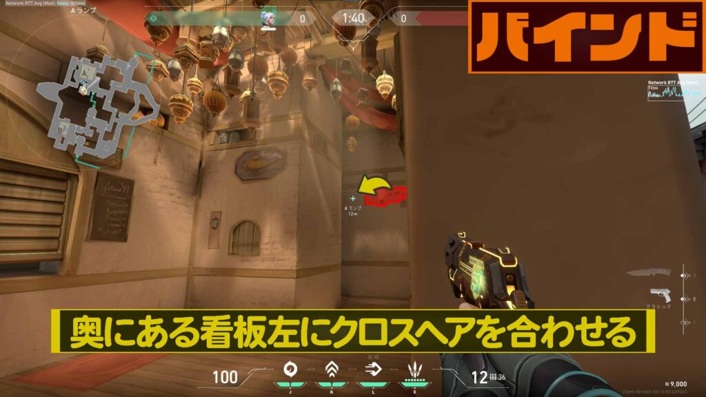 ランプ中まで制圧したら奥にある看板左にクロスヘアの中心を合わせる。