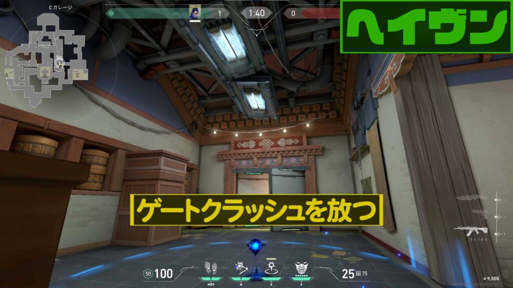 ホームMap[マップ]HAVEN[ヘイヴン] 【VALORANT】ヘイヴン×ヨル 見逃したらオワオワリ!一気に裏取りテレポートゲートクラッシュ【005】【小技】 2022年2月16日2022年6月4日 SHARE ツイート シェア はてブ LINE Pocket ツイート シェア はてブ LINE Pocket YouTube Twitter Instagram 概要 今回はヘイヴンでヨルのゲートクラッシュを使った裏取りテレポートを紹介したいと思います。 マップ エージェント 実践 配置に着く ガレージの階段横に張り付きます。 発動準備 ダブルドア上にある装飾の左側模様の右端にクロスヘアの中心を合わせます。 拡大するとこんな感じです。 発動 そのままゲートクラッシュを放ちます。 ミニマップを見て相手スポーンに到達してからゲートクラッシュを起動します。 相手スポーン地点にテレポートする事が出来ます。※但し、ゲートクラッシュの通過が見られている場合はフリーキルされる可能性があるので、 タイミングや相手の動きを予想しながら使いましょう。 プロがオススメするデバイス紹介 BENQ ゲーミングモニター ZOWIE esports [24.5型 /ワイド /フルHD(1920×1080)] XL2546Kposted with カエレバ楽天市場Amazon Logicool G PRO X SUPERLIGHT ワイヤレス ゲーミングマウス 史上最軽量 63g未満 LIGHTSPEED無線技術 HERO 25Kセンサー POWERPLAY無線充電対応 G-PPD-003WL-BK G-PPD-003WL-WH ブラック ホワイト 国内正規品 2年間無償保証posted with カエレバ楽天市場Amazon Logicool G PRO X ゲーミングキーボード テンキーレス 有線 GXスイッチ クリッキー 日本語配列 LIGHTSYNC RGB 着脱式ケーブル G-PKB-002 国内正規品 2年間無償保証posted with カエレバ楽天市場Amazon Logicool G テンキーレス ゲーミングキーボード 無線 G913 GLスイッチ リニア タクタイル クリッキー 日本語配列 LIGHTSPEED ワイヤレス Bluetooth LIGHTSYNC RGB G913-TKL-LNBK 国内正規品 2年間無償保証posted with カエレバ楽天市場Amazon VALORANT関連商品 【ポイント5倍 6/22 19:59迄】 WIS 23.8インチ 165Hz ゲーミングモニター PS5 PS4 VALORANT SWITCH APEX FPS FORTNITE PUBG LOL 液晶ディスプレイ MPRT 1ms FHD フルHD HDMI 非光沢 メーカー保証3年価格:24,800円(税込、送料無料) (2023/6/17時点)楽天で購入【新品】【今ならRTX2060、12世代CPUにアップ! 】ゲーミングPC デスクトップパソコン GeForce RTX2060 22型液晶モニター付 第12世代 Intel 12100F 3.30GHz 最大4.30GHz 4コア 8スレッド Win10 NVMe M.2 SSD256GB メモリ16GB ゲーミングパソコン eスポーツ PASOUL 煌価格:99,800円(税込、送料無料) (2023/6/17時点)楽天で購入ゲーミングヘッドセット Razer レイザー Kraken Black ゲーム PC switch PS4 PS5 Xbox FPS 人気 マイク付き ヘッドホン 通話 ヘッドセット クラーケン ブラック 【送料無料】価格:6,980円(税込、送料無料) (2023/6/17時点)楽天で購入 コメントを残す コメントをキャンセルメールアドレスが公開されることはありません。 ※ が付いている欄は必須項目ですコメント ※ 名前 ※ メール ※ サイト 次回のコメントで使用するためブラウザーに自分の名前、メールアドレス、サイトを保存する。 Δ